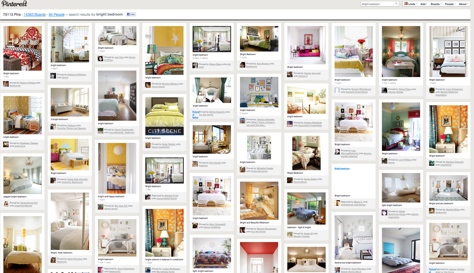 Pinterest readers tag "bright" bedrooms