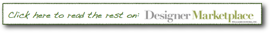 Long time readers will have noticed that my posts have become, shall we say, sparse, over the last year or so. Mainly, it's because I've been doing a lot of writing for other websites, notably Networx.com and Williams-Sonoma Designer Marketplace. The Networx articles are focused to the general home market and are a mix of decorating ideas, product pics on a theme, sometimes cleaning ideas, etc. Many of these articles are also syndicated nationally and in Canada and have appeared in the LA Times, Chicago Tribune, Miami Herald, Vancouver Sun and others. The Williams-Sonoma Designer Marketplace articles are geared towards the professional interior designer and are tips and ideas for running a design business. Other writers in this series include Tobi Fairley, Robin Callan of RoomFu, Jay Johnson of Design2Share, and Melissa Michaels of The Inspired Room. If you're a designer, or looking to become one, this series of posts is educational and inspirational.